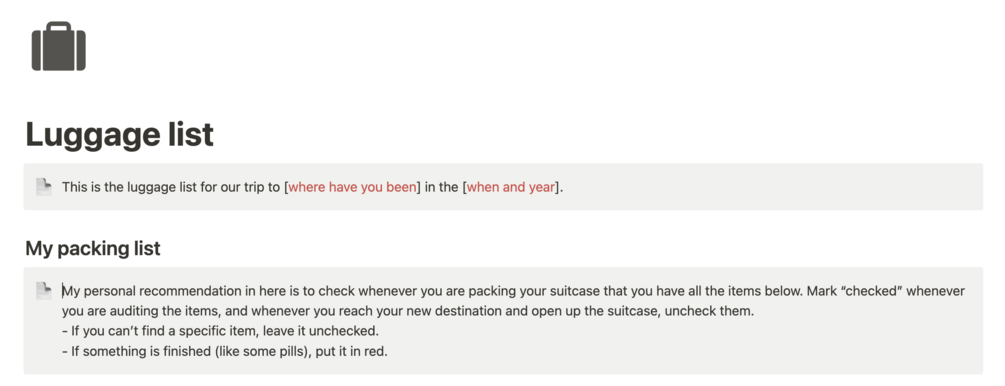 This template will help you have all your packing list ready for your next trip